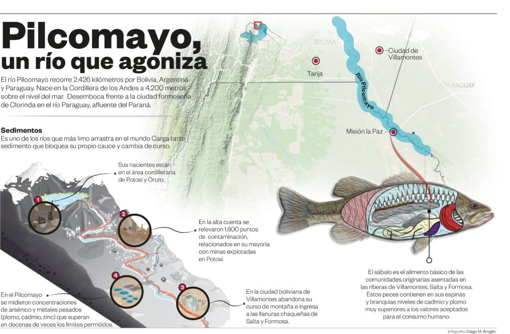 Un equipo integrado por científicos de Inglaterra, Holanda y Bolivia detectó altas concentraciones de metales pesados en el cabello de los pobladores ribereños del Pilcomayo, atribuibles al consumo de pescado y del agua del río contaminada con desechos mineros.