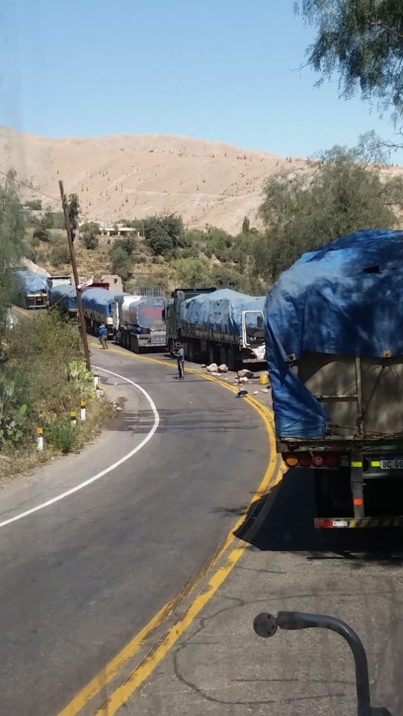 El bloqueo indefinido en la carretera hacia el puerto de Matarani, en Perú, se inició hace un mes y desde esa fecha cientos de camiones que llevan y traen carga de exportación e importación boliviana se encuentra abandonados a su suerte. Si bien la medida se levantó por una semana se reanudó el lunes.