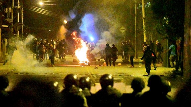 El momento más conflictivo se vivió en la noche cuando los manifestantes usaron piedras, bazucas artesanales, petardos y ondas en contra de los uniformados. El contingente respondió con una gasificación.
