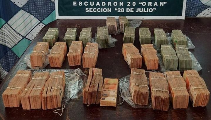 Sin embargo, al analizar el contenido de los bolsos a través de un escáner, descubrieron que se trataba de una gran cantidad de billetes, y al contabilizarlos se determinó que la suma era de 9.705.700 pesos argentinos.