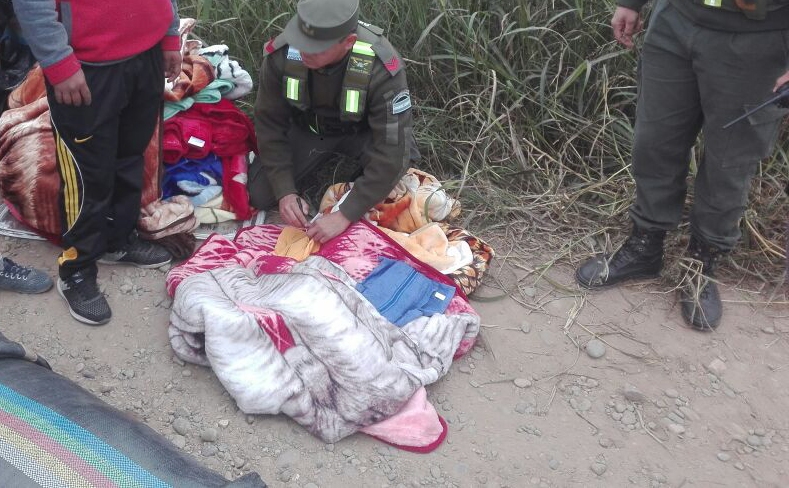 La imagen corresponde al operativo en el Puesto 28 contra las dos ciudadanas bolivianas, constatando los gendarmes los paquetes que contenían la droga ante la presencia de testigos.
