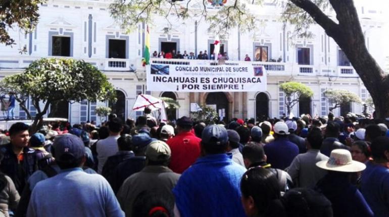 Instituciones públicas y privadas de Chuquisaca llevan adelante hoy marchas de protesta contra el estudio técnico de Yacimientos Petrolíferos Fiscales Bolivianos (YPFB) que estableció que el campo Incahuasi está en su totalidad en el departamento de Santa Cruz.