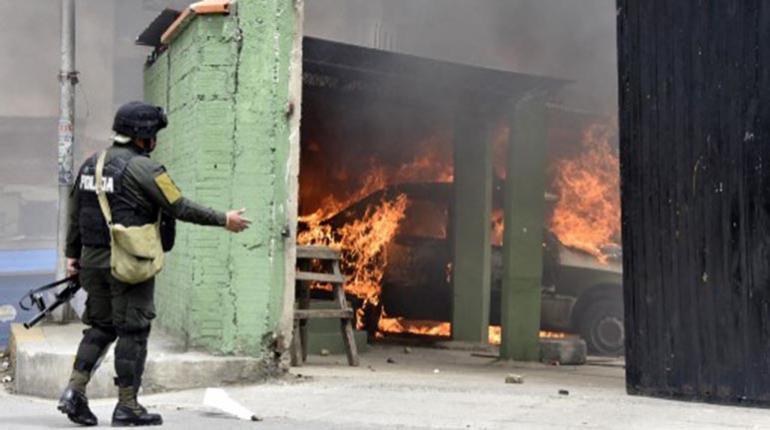 Tres personas fueron detenidas tras los destrozos de un módulo policial en la zona de Villa Fátima, en La Paz, donde además fueron quemados cinco vehículos. El daño a estos motorizados asciende a la suma de al menos $us 40.000.