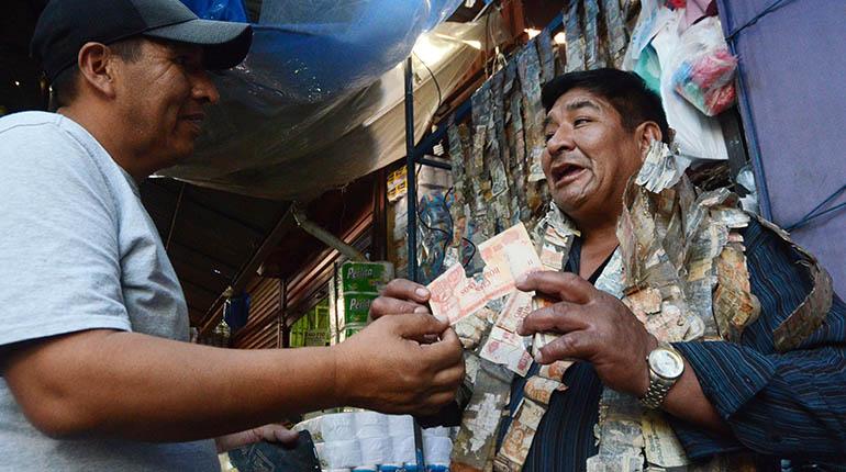 La gente llega al puesto de Hernán Atora a cada instante, compra jabón y otros detergentes con sus billetes viejos, rotos o colados. Los compradores prefieren llevarse los artículos de limpieza antes que perder sus 10 o 20 bolivianos, porque nadie más les recibe un billete en mal estado.