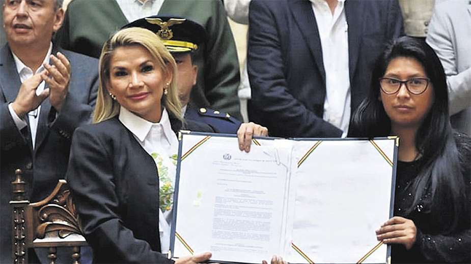 En el hall del Palacio Quemado, en el mismo lugar donde 14 días antes el entonces líder del Comité Cívico pro Santa Cruz, Luis Fernando Camacho, había dejado la Biblia, poco antes de la renuncia del exmandatario Juan Evo Morales, la presidenta transitoria y Copa protagonizaron una histórica fotografía cuando ambas sostuvieron la ley que ayudó a consolidar las elecciones que al año siguiente determinaron el retorno del MAS al poder.