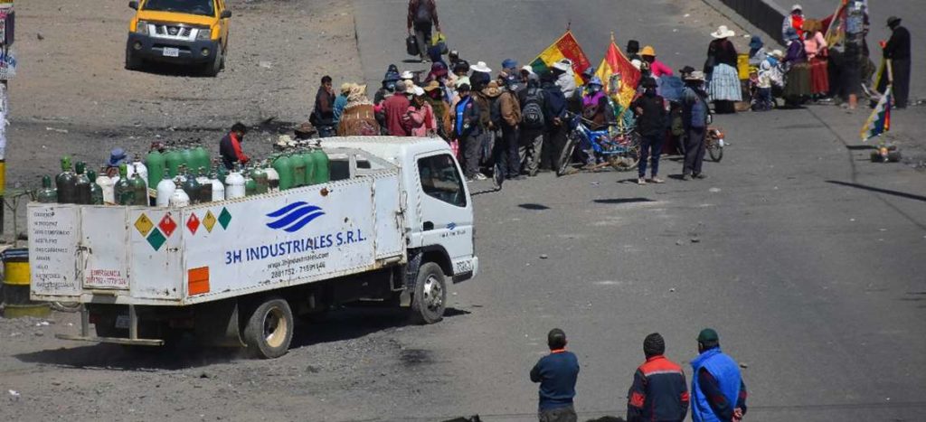 El secretario ejecutivo de los médicos de la Caja Petrolera de Salud de La Paz, Óscar Oliden, denunció que los camiones cisternas que transportan oxígeno medicinal para el centro médico donde trabaja están bloqueados en la ciudad de El Alto. El galeno informó que debido a que el oxígeno no llega al nosocomio hay 90 pacientes que están en riesgo por falta del insumo, que se acabará este sábado.