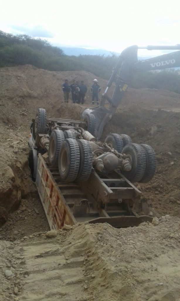 De la misma manera, el coronel Gordy informó que otro vehículo pesado sufrió un vuelco de campana, pero en el tramo carretero en construcción San Jacinto Sur – Norte, vía a la Exposur. Se trataría de una volqueta marca Nissan del Servicio Departamental de Caminos que cuando ingresó al banco de carga de material el piso en construcción cedió y ocasionó el vuelco.