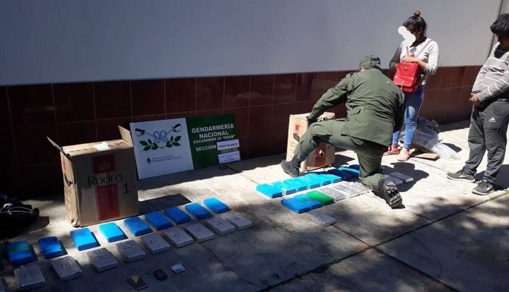 Siguiendo con la presencia de testigos hábiles, los gendarmes procedieron al análisis de la sustancia que arrojó positivo para cocaína con un peso total de 54,275 kilos; el estupefaciente se encontraba oculto en 43 paquetes. De inmediato se procedió a la detención de dos de los tres ocupantes del vehículo y el secuestro de la droga y elementos de prueba.