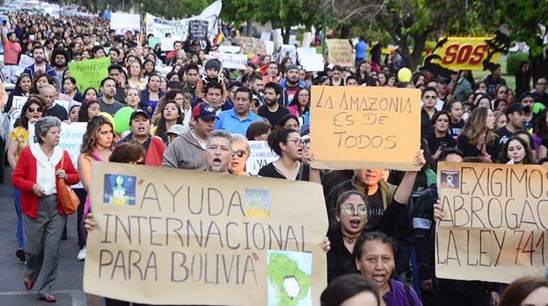 Miles de activistas ambientales y ciudadanos marcharon ayer en las ciudades de La Paz, Cochabamba, Santa Cruz, Sucre y Tarija para exigir al Gobierno que declare desastre nacional por el incendio que ya destruyó 745 mil hectáreas en la Chiquitanía.