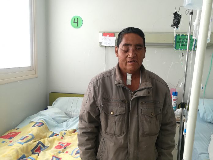 Postrado en la cama número 4 de la habitación 204, en la sala de cirugía varones, del Hospital San Juan de Dios, está Pablo López Sanabria, un hombre de 58 años de edad que tiene destrozados prácticamente todos los huesos de la cara por dentro y necesita una operación urgente para no perder la vista, intervención que no se realiza en Bolivia.
