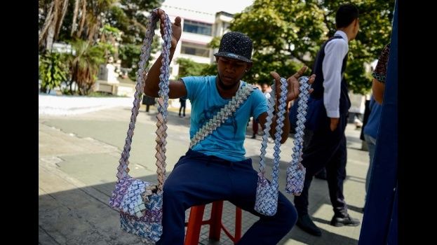 La crisis venezolana convirtió el dinero en materia prima para fabricar bolsos. Es la única forma que tengan algo de valor